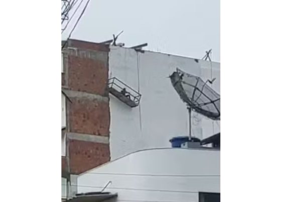Trabalhador fica pendurado em andaime no interior da Bahia.