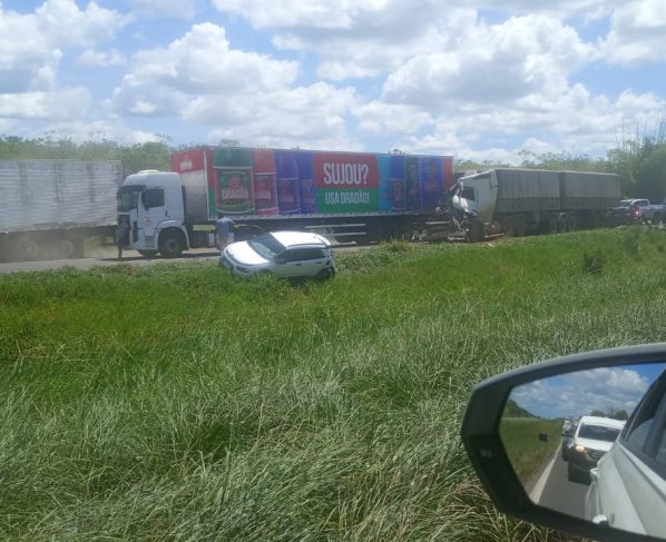 Equipes da PRF permanecem no local realizando o controle do trânsito e acompanhando o atendimento da ocorrência. As circunstâncias que levaram à colisão ainda deverão ser apuradas.