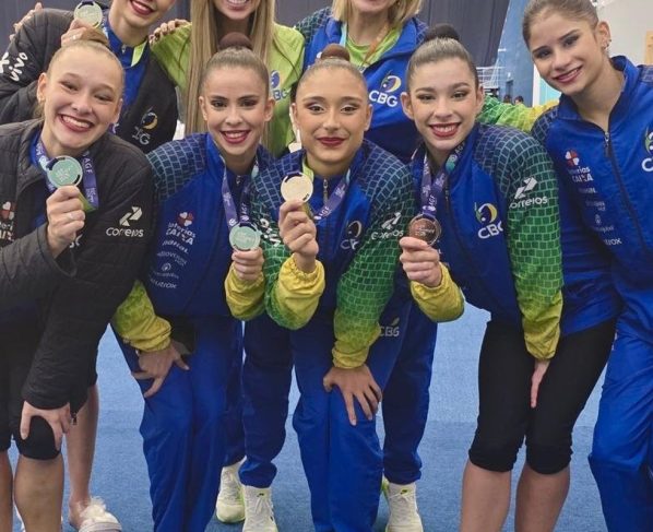 Uma semana após faturar a medalha de prata na etapa da Copa do Mundo de ginástica rítmica em Tashkent – capital do Azerbaijão -, o Brasil subiu novamente ao pódio no domingo (19), com uma nova série de cinco bolas. O conjunto amarelinho voltou a garantir a prata em Baku, também no Azerbaijão, ao se apresentar ao som da canção britânica “Feeling Good”, na versão do cantor canadense Michael Bublé.