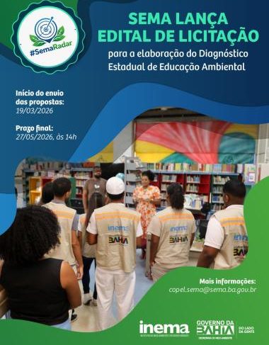 A Secretaria do Meio Ambiente da Bahia (Sema) lançou edital de licitação para a elaboração do Diagnóstico Estadual de Educação Ambiental. A iniciativa tem como objetivo reunir informações atualizadas sobre ações, programas e práticas desenvolvidas no estado, contribuindo para o fortalecimento de políticas públicas na área.